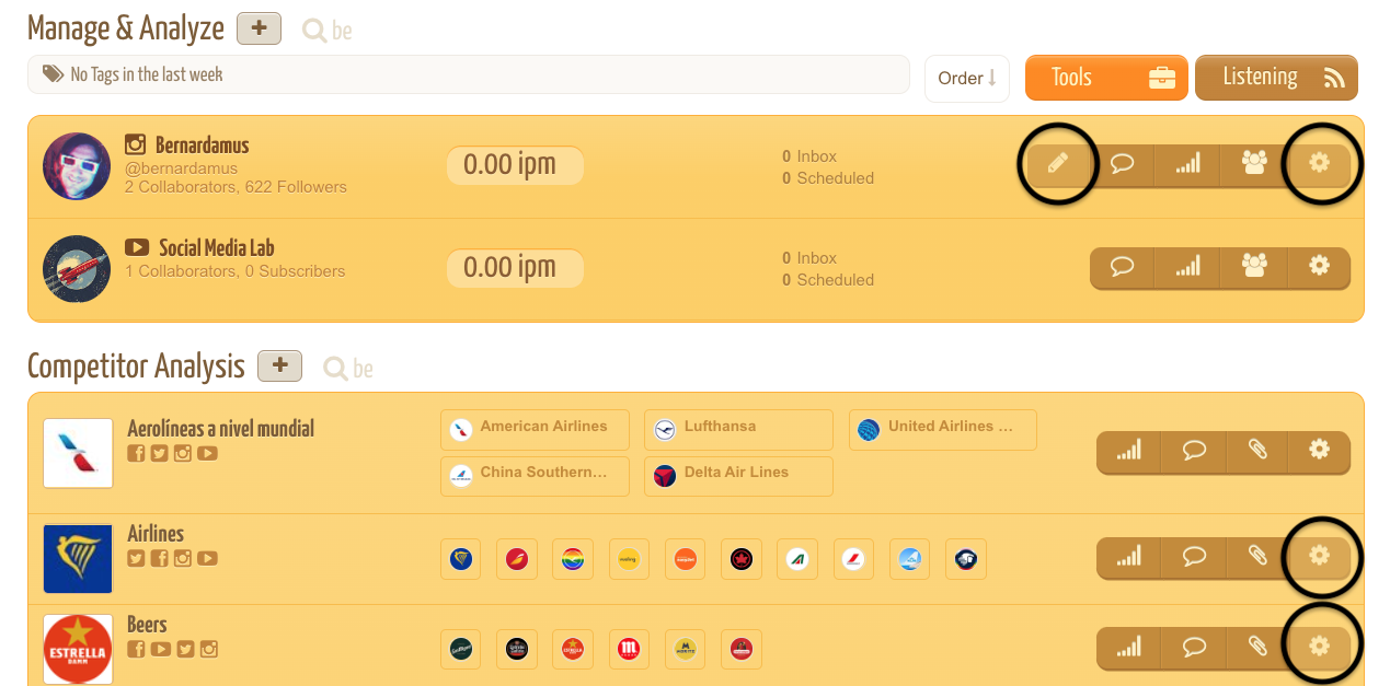 You can organize the social profiles in different modules of analysis dedicated to specific industries or categories of profiles.