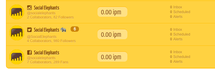 - Assigned Collaborators: the number of Social Elephants users who have access to each Social Profile