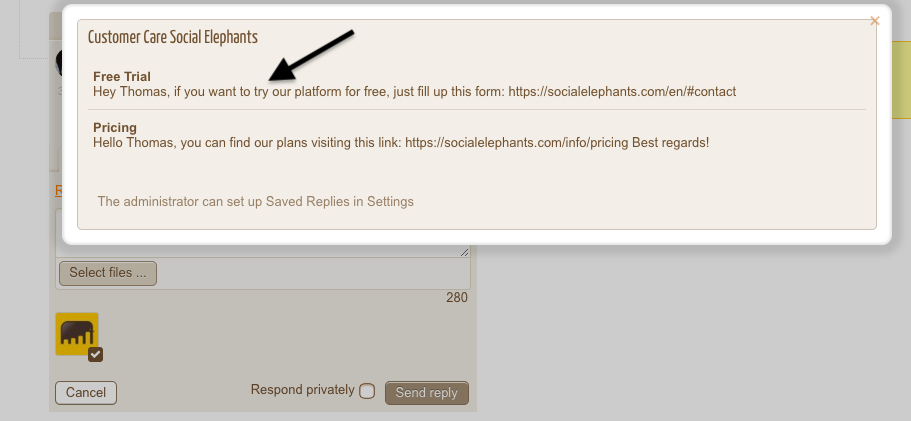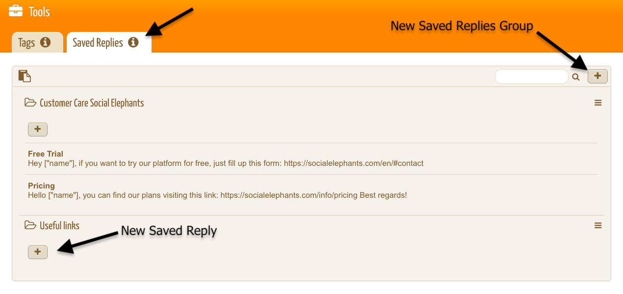 Saved Replies can be organized in different groups, each of them for different brands or Social Profiles with different needs.